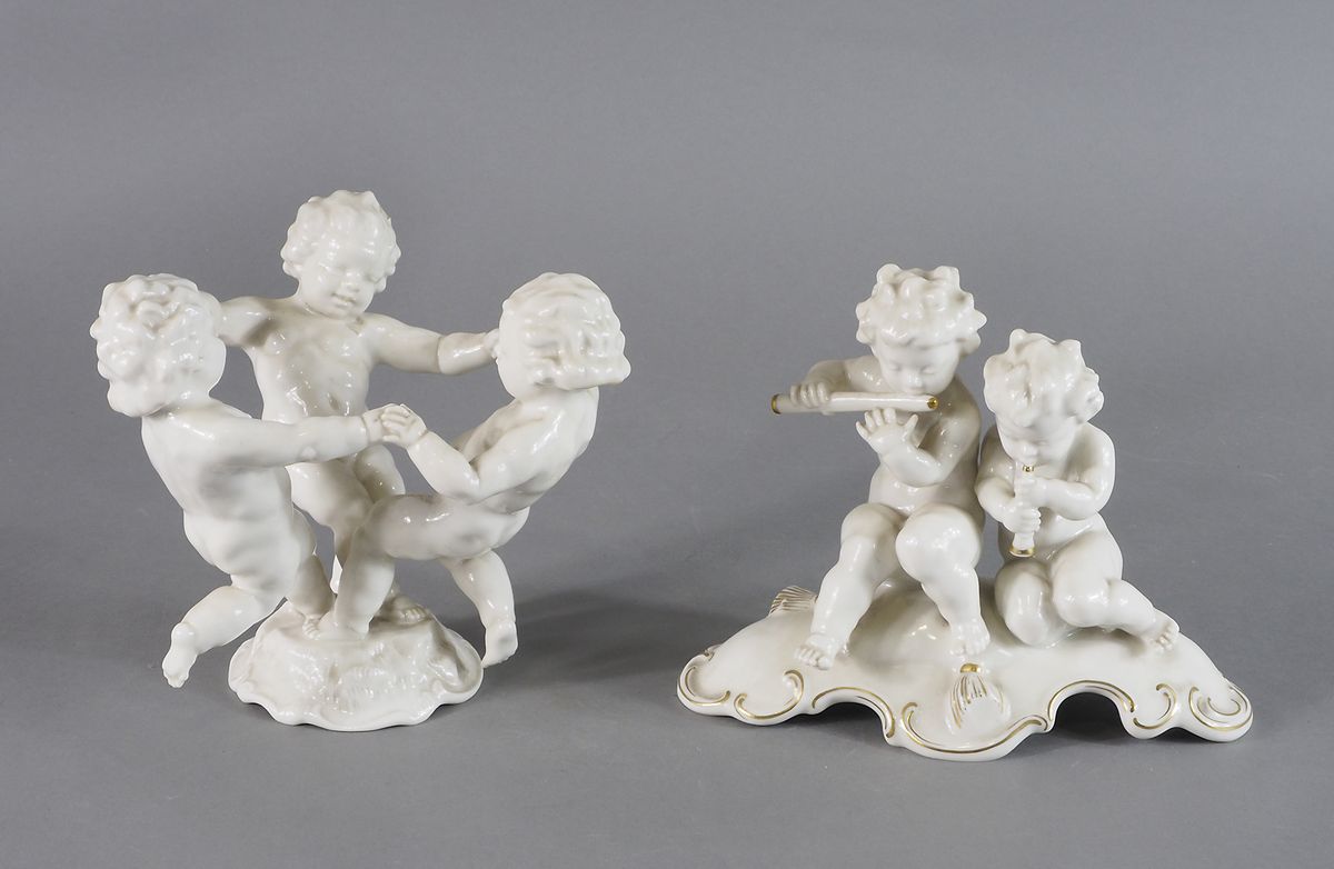 Hutschenreuter: lotto di 2 gruppi in porcellana con figure di putti.