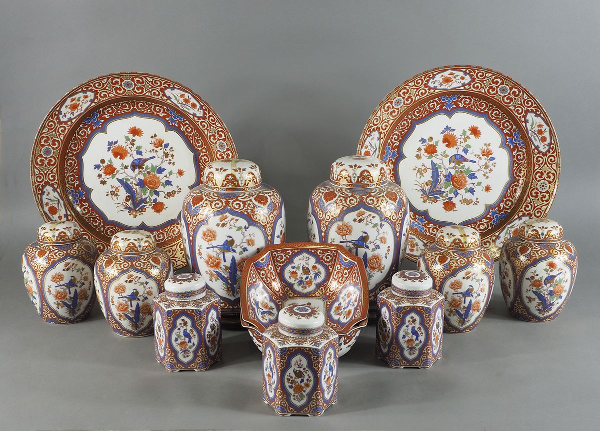 Kaiser: lotto di 13 tra piatti, ciotole e vasi in porcellana policroma decorati a motivi orientali su modello Ming. Misure diverse.