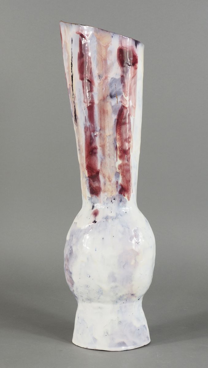 Grande vaso in ceramica a smalti policromi. Firmato sotto la base. H. cm. 52,5. (felure sul collo).