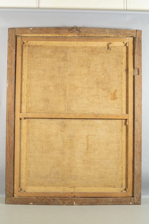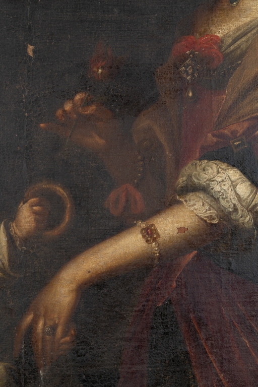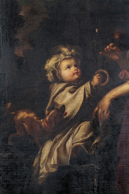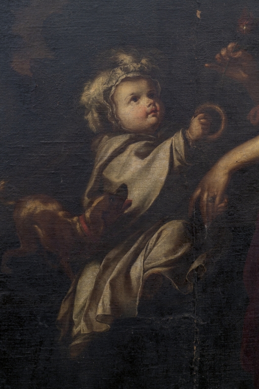 La grande tela presenta giunte sui lati e in alto ed è notevolmente offuscata. Se non è possibile apprezzare appieno la sua cromia che si può facilmente immaginare assai più viva e preziosa di quanto sia ora visibile è comunque possibile constatare l'alto livello qualitativo dell'opera e riconoscervi la mano di un abile ritrattista genovese di fine Seicento Nicolò Maria Vaccaro nato intorno al 1659 e morto a Madrid nel 1720.