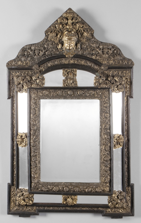 Specchiera fiamminga in legno ebanizzato e rame dorato Nord Europa sec.XIX