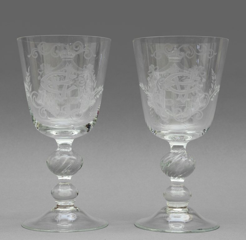 Coppia di grandi bicchieri in cristallo molato con stemma sabaudo