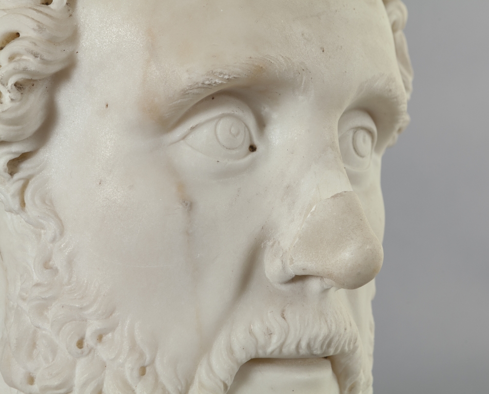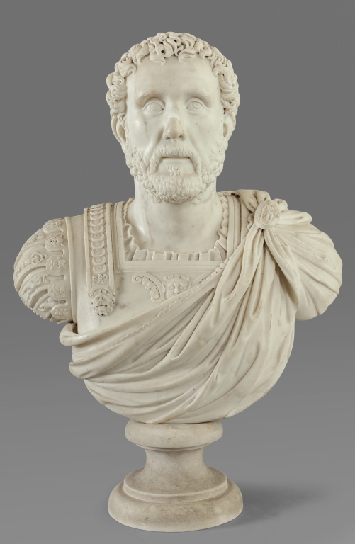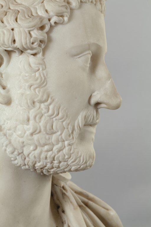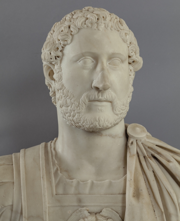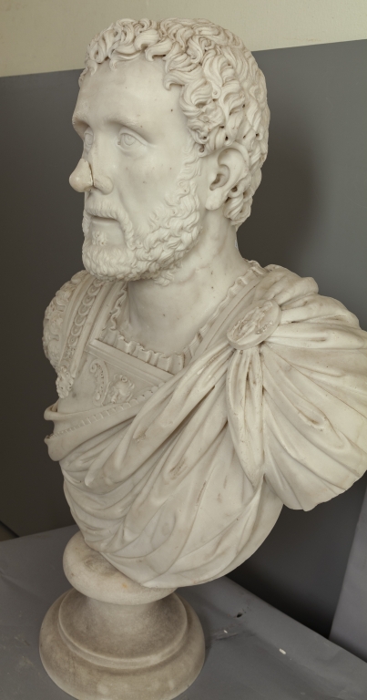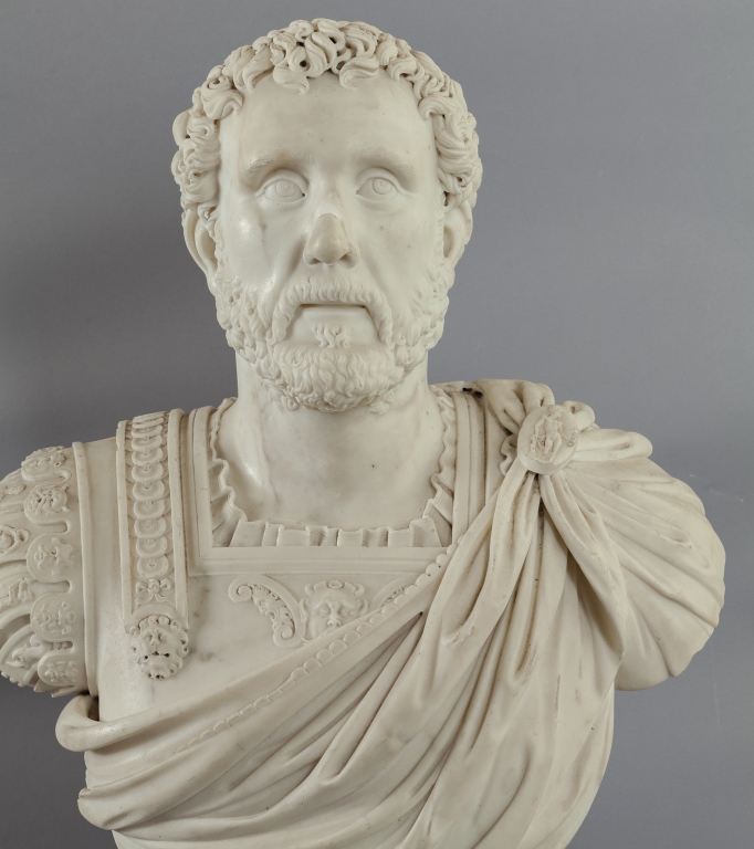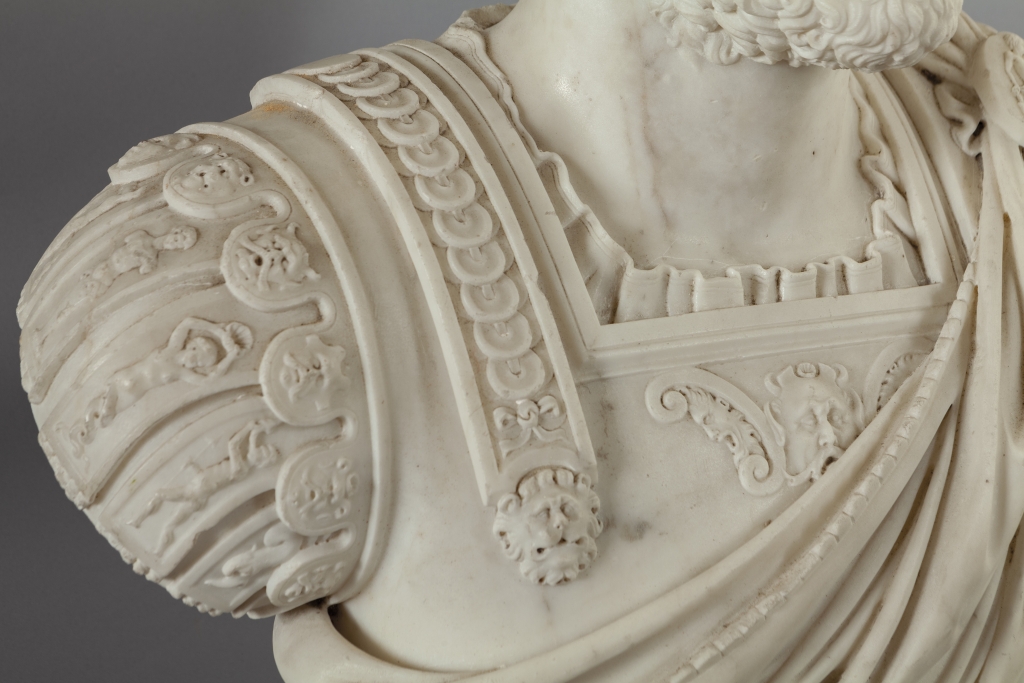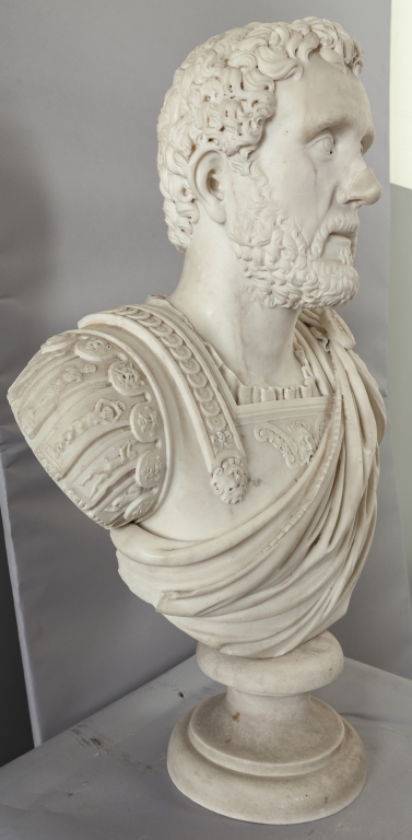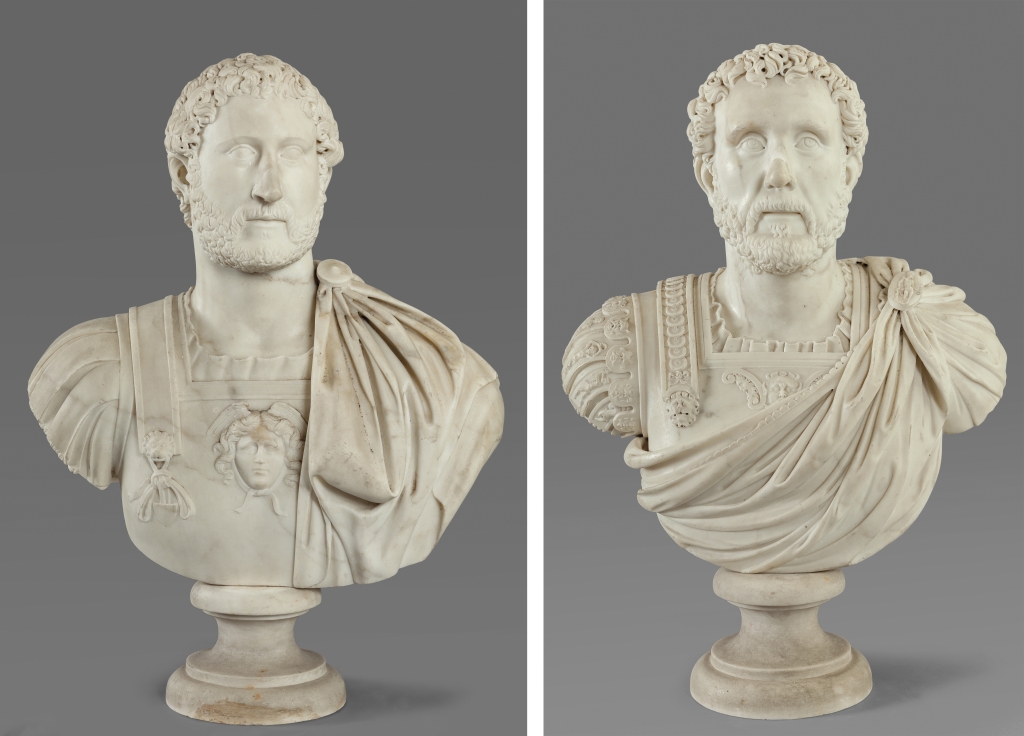 Due busti in marmo statuario raffiguranti imperatori romani sec.XVII