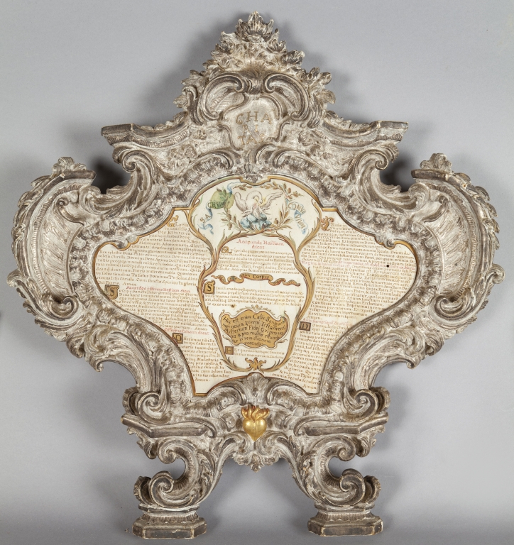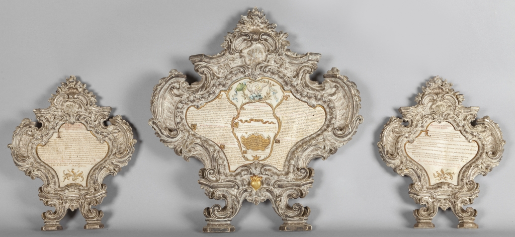 Tre cantaglorie in legno finemente intagliato ed argentato a mecca Genova I metà sec.XVIII