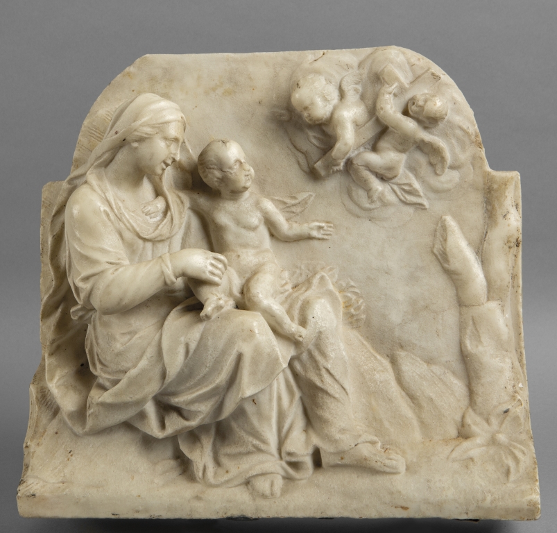 Madonna con Bambino e angioletti bassorilievo in marmo Genova sec.XVII