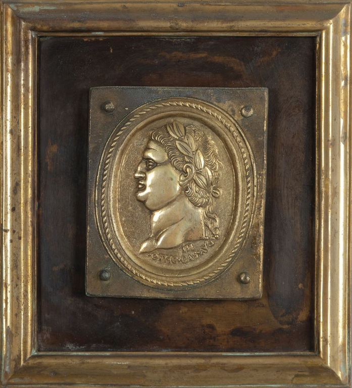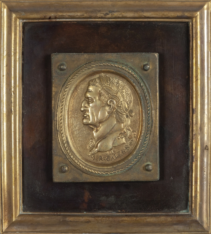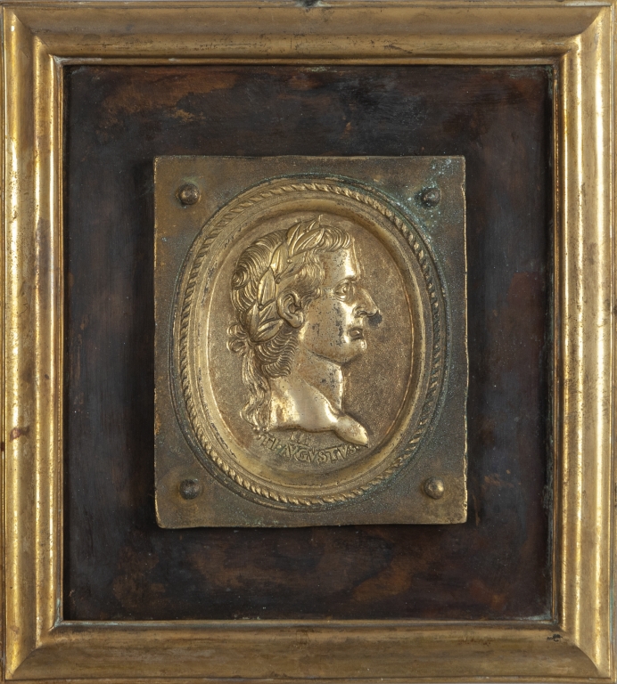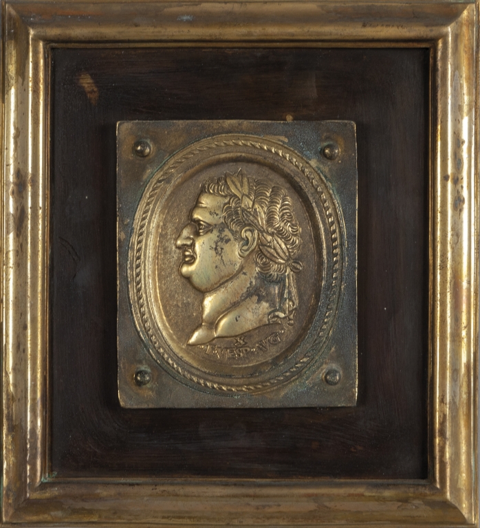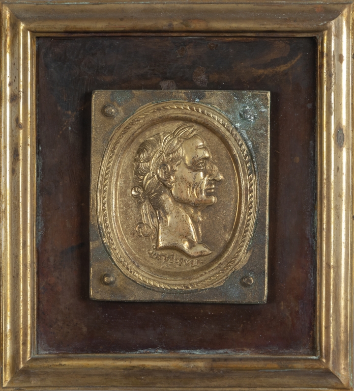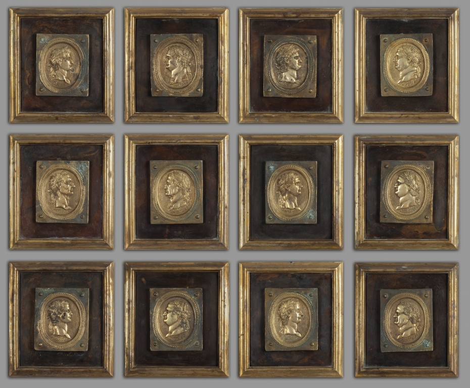 Dodici placche in bronzo dorato e rame raffiguranti profili di imperatori romani