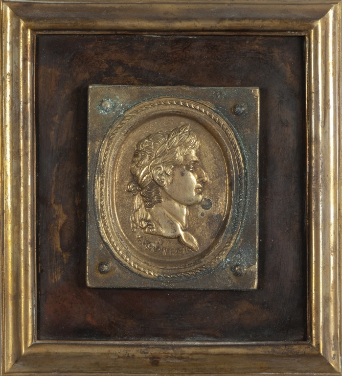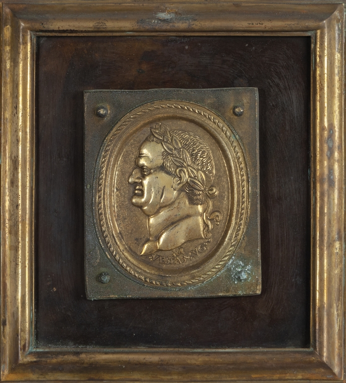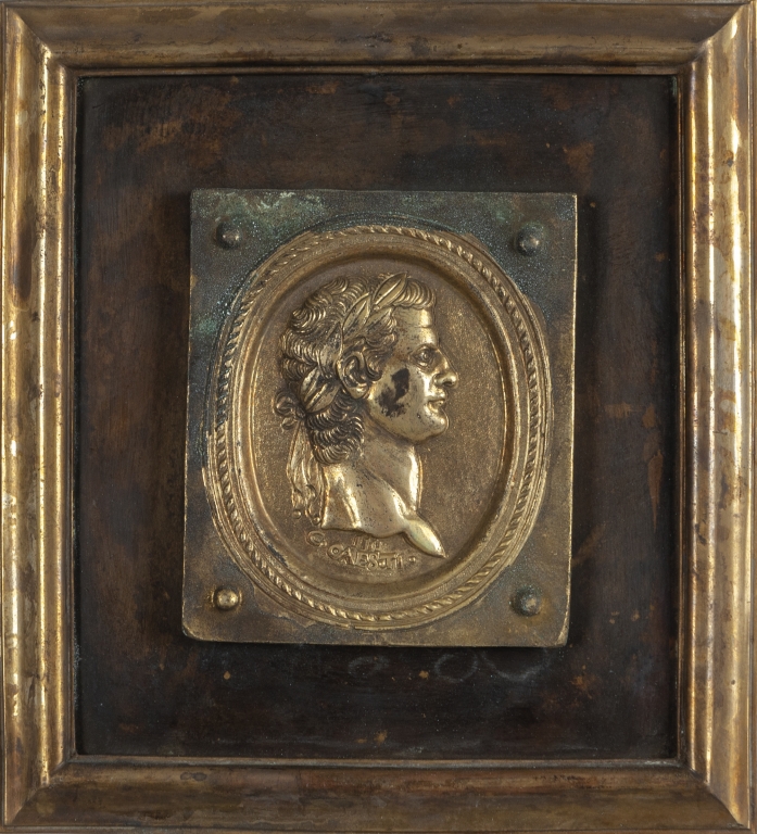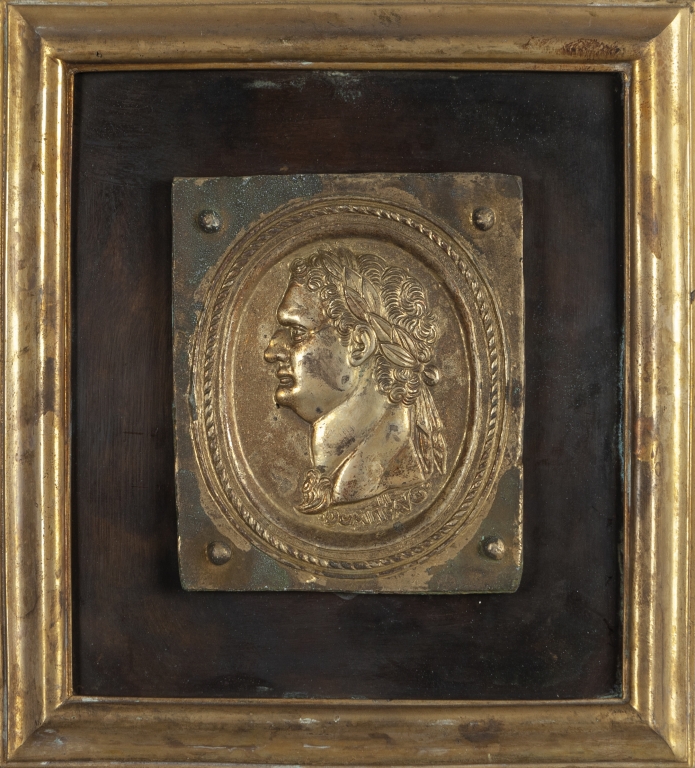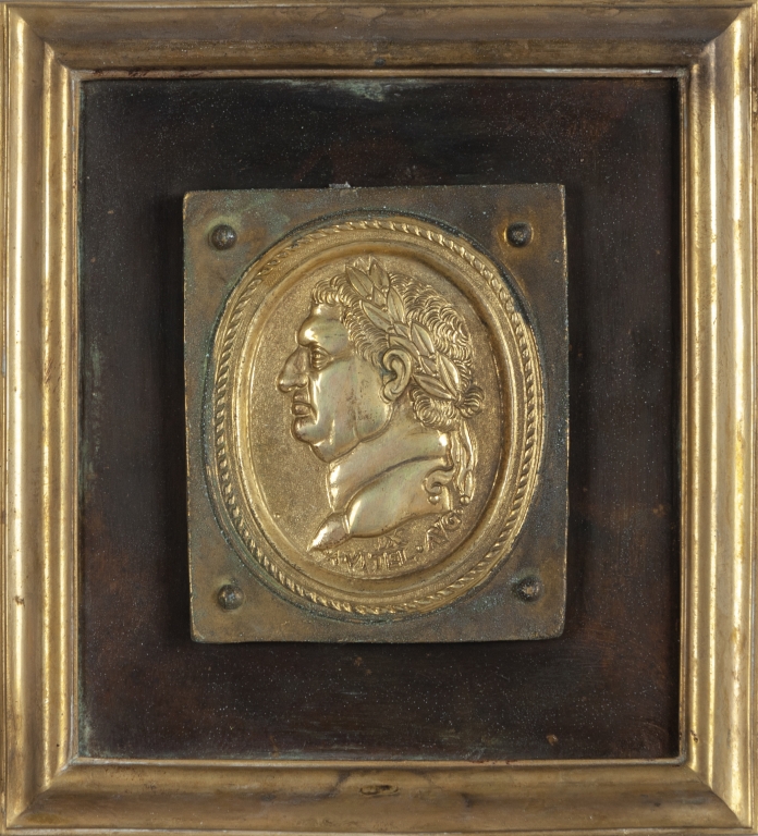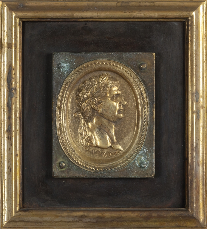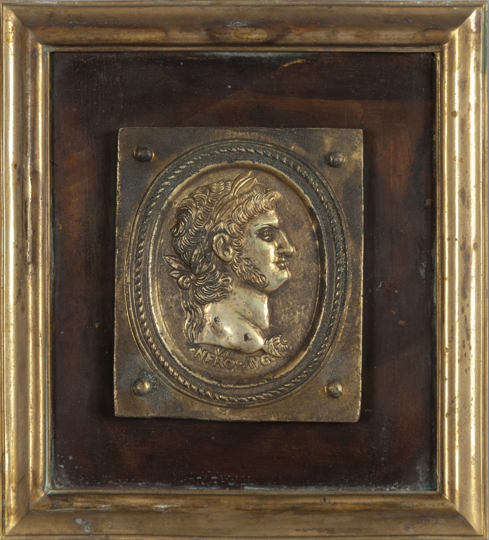 Dodici placche in bronzo dorato e rame raffiguranti profili di imperatori romani
