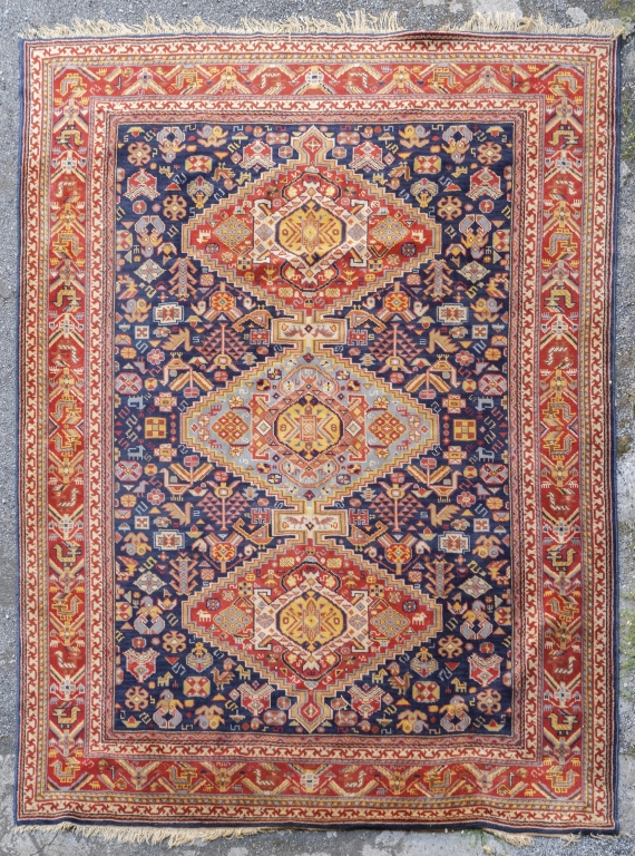 Grande tappeto persiano a fondo rosso decorato a motivi geometrici sec.XX