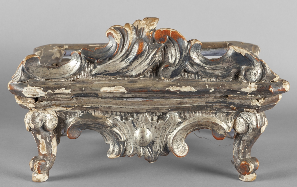 Leggio Luigi XIV in legno intagliato ed argentato a mecca Napoli sec.XVIII