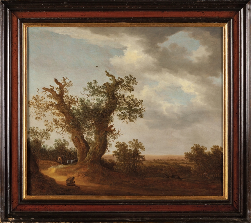 Scuola fiamminga fine sec.XVIII 'Paesaggio con viandanti' olio su tavola