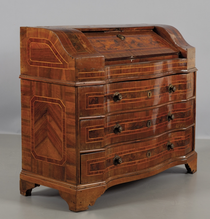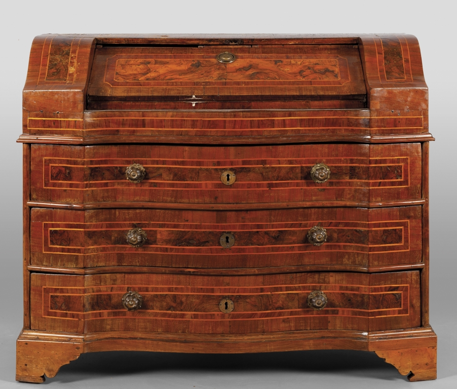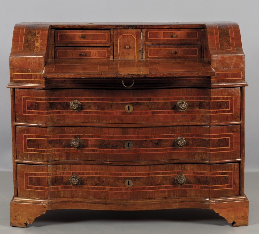 Bureau Luigi XIV lastronato in noce e radica di noce Verona inizi sec.XVIII