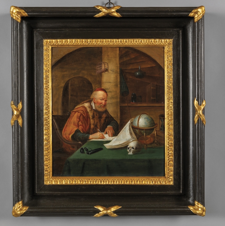 Scuola fiamminga sec.XVII 'Filosofo' olio su tavola palchettata