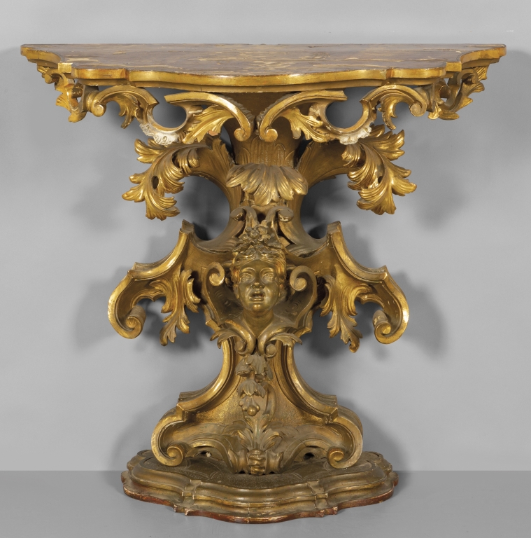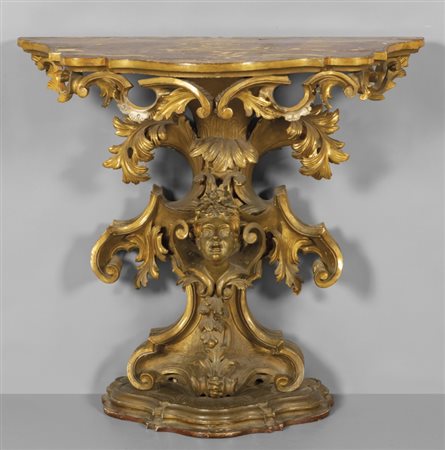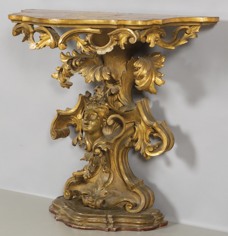 Console Luigi XIV in legno intagliato e dorato con figura femminile Toscana metà sec.XVIII