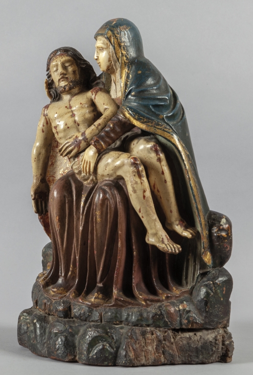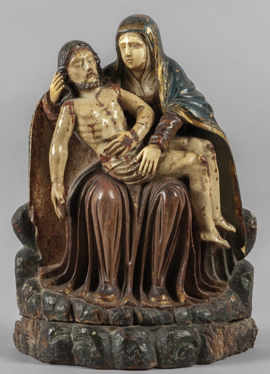 La Pietà gruppo in legno intagliato e laccato viso e mani della Maddalena in avorio sec.XVIII