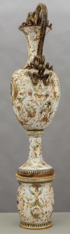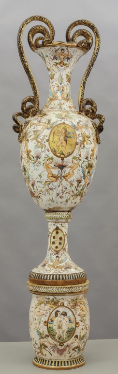 Grande vaso in ceramica decorato in policromia a grottesche Gualdo Tadino sec.XX