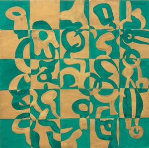 Carla Accardi Trapani 1924 Verdeoro, 1965 Gouache su carta, cm. 49,4x49,8 Al verso data e firma: 1965 - 177 bis / Accardi. Foto autenticata dall'artista, Roma 11/10/05, con n. 177 bis e timbro Studio Accardi con n. 99/05.