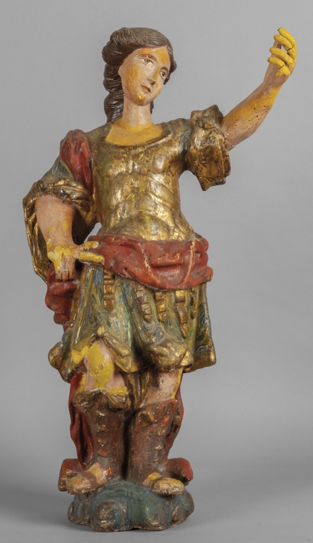 Figura femminile in legno intagliato dorato e laccato sec.XVIII