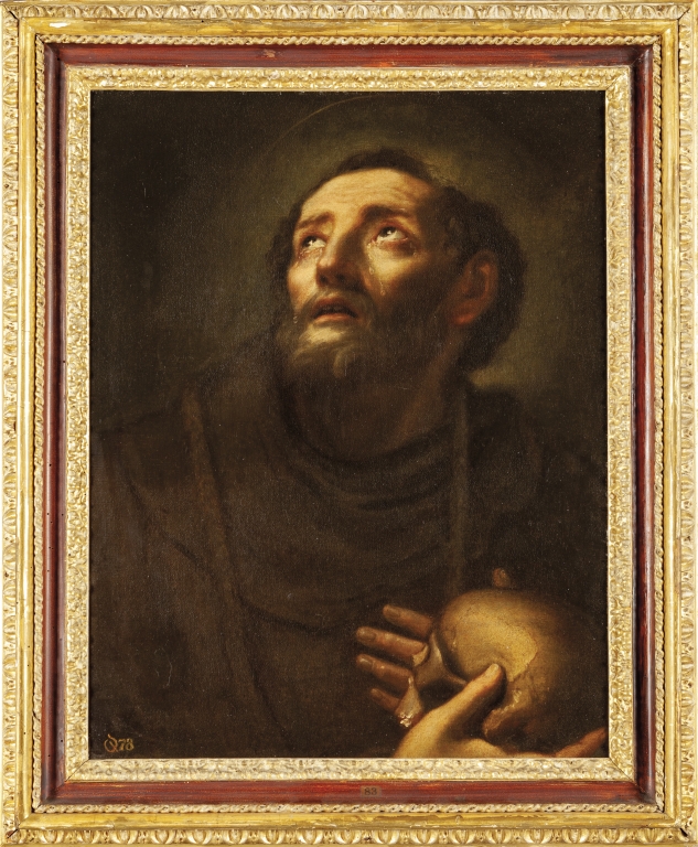 Scuola lombarda sec.XVII 'San Francesco' olio cornice antica in legno intagliato dorato e laccato