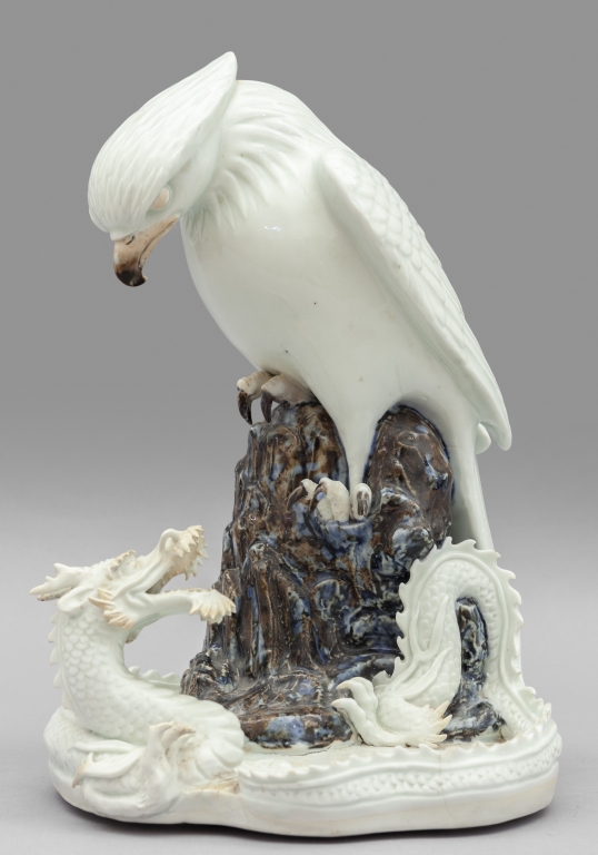 Il falco e il drago gruppo in porcellana policroma Giappone sec.XIX