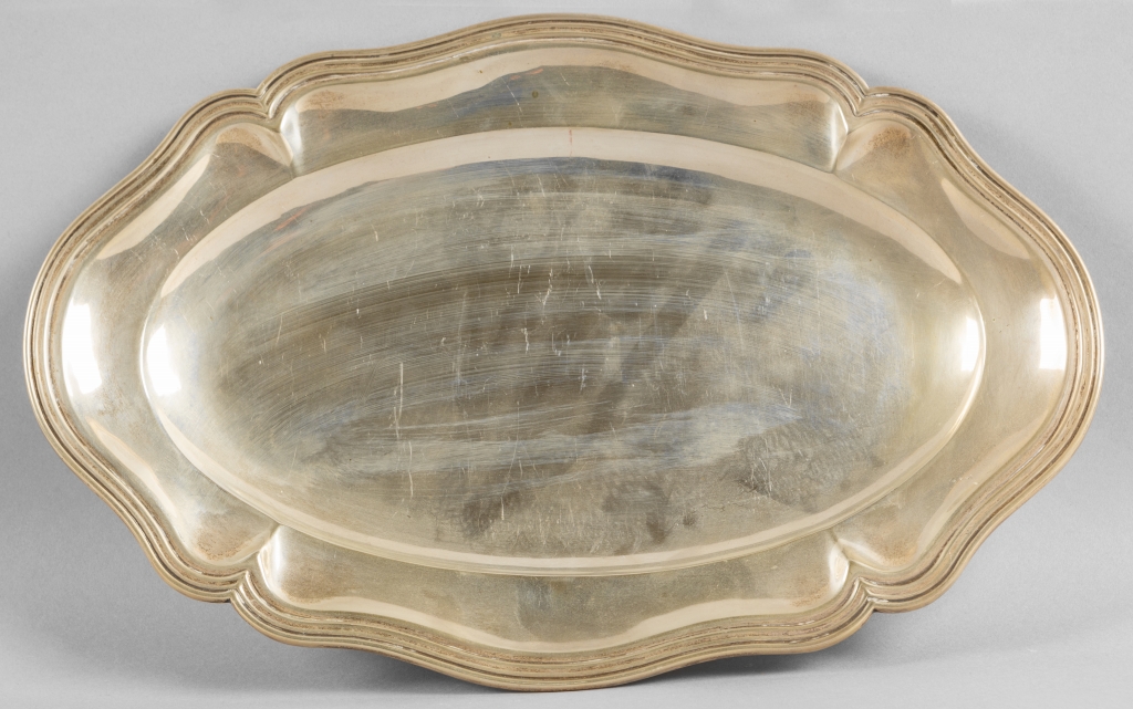 Precedente Lotto 585 Successivo Aste Boetto - Via Mura dello Zerbino 10R, 16122 Genova Antiquariato, Pittura del sec.XIX e Arte Orientale Terza sessione giovedì 26 settembre 2019 ore 15:30 (UTC +01:00) OGGETTISTICA Vassoio in argento gioielleria Chiappecm.45x29 gr.958