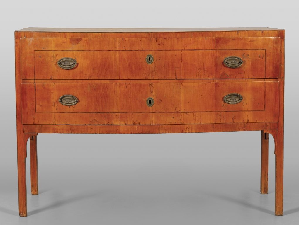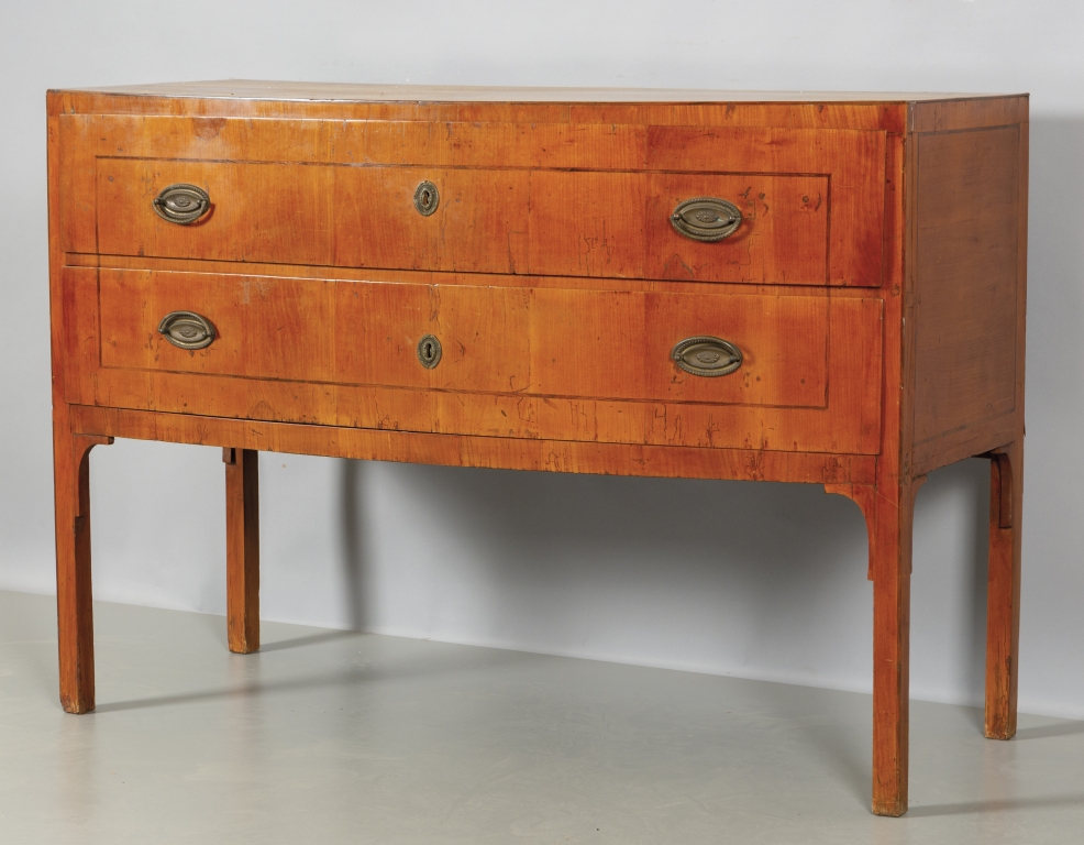 Comò Direttorio in noce filettato due cassetti sul fronte Altoveneto inizi sec.XIX