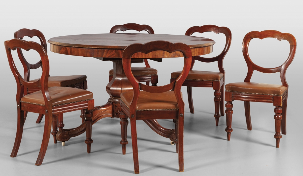 Precedente Lotto 611 Successivo Aste Boetto - Via Mura dello Zerbino 10R, 16122 Genova Antiquariato, Pittura del sec.XIX e Arte Orientale Terza sessione giovedì 26 settembre 2019 ore 15:30 (UTC +01:00) MOBILE Tavolo Luigi Filippo in mogano con sei sedie sec.XIX