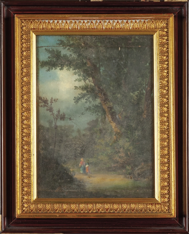 Scuola italiana sec.XIX 'Figurine nel parco' olio su tavoletta