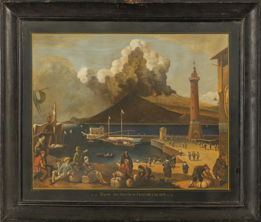 'Veduta del Vesuvio in eruzione e del porto di Napoli' gouache