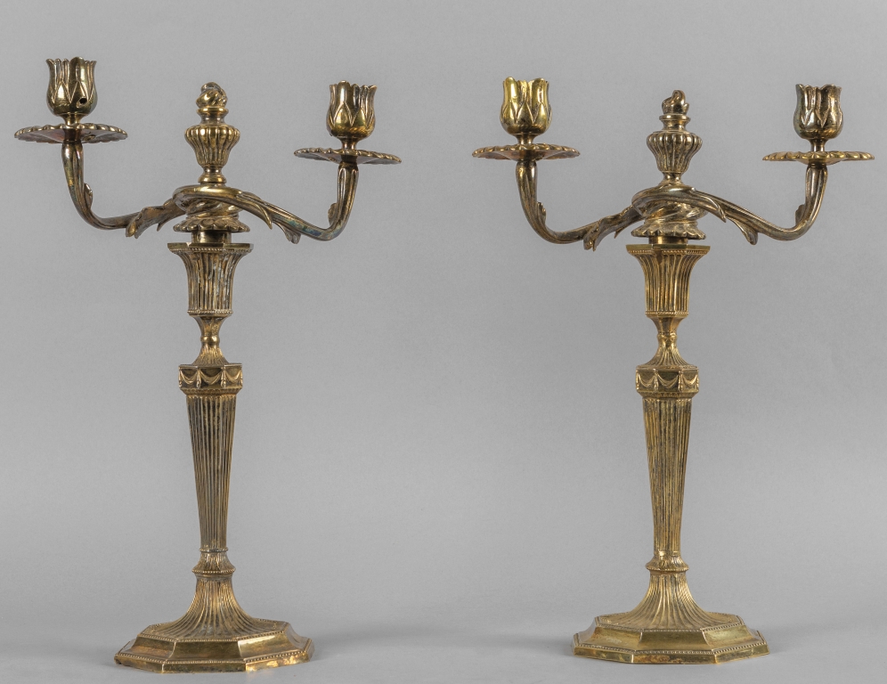 Coppia di candelabri in metallo argentato Inghilterra sec. XIX