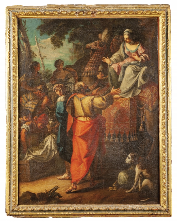 'Scena Biblica' olio sec.XVIII cornice coeva in legno intagliato e dorato