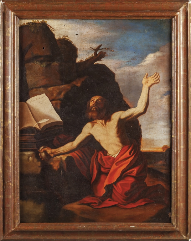 Scuola napoletana sec.XVII 'San Gerolamo in estasi con libro' olio