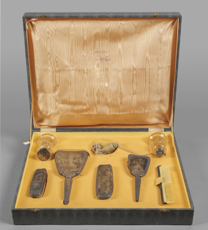 Servizio da toilette in argento e cristallo nella sua scatola