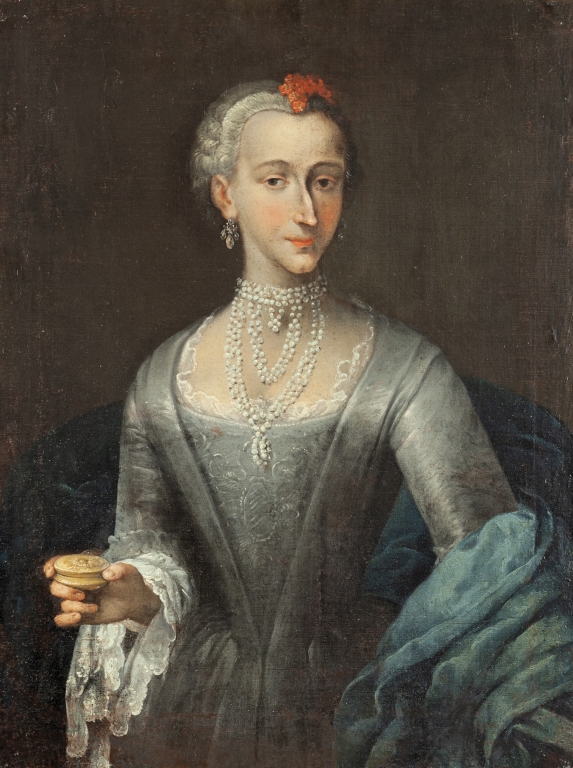 Scuola piemontese sec.XVIII 'Ritratto di dama con tabacchiera' olio