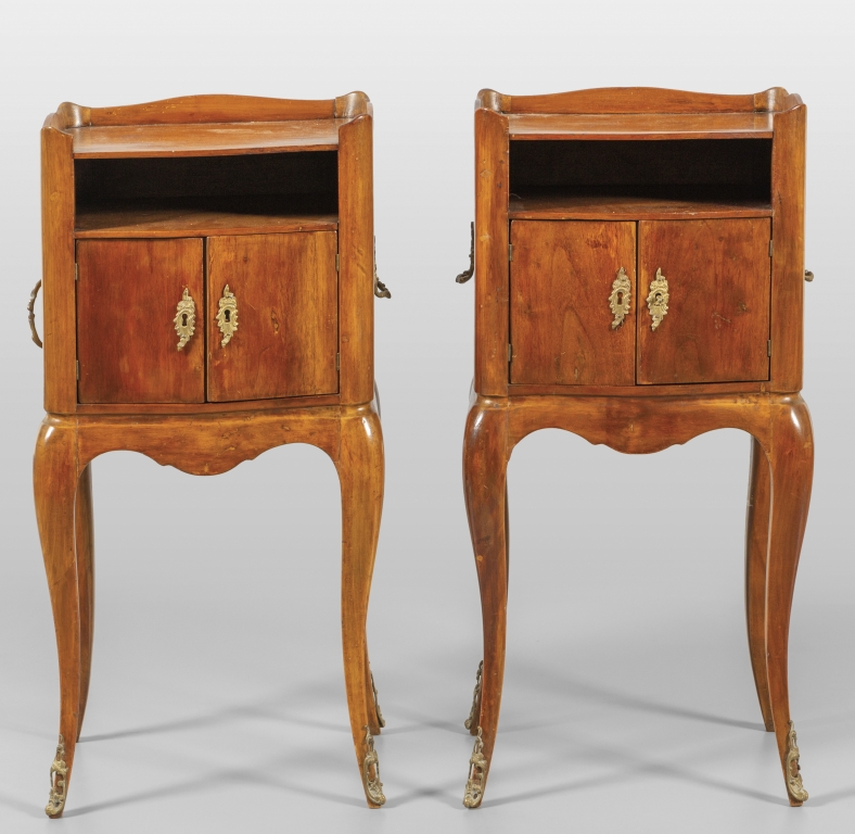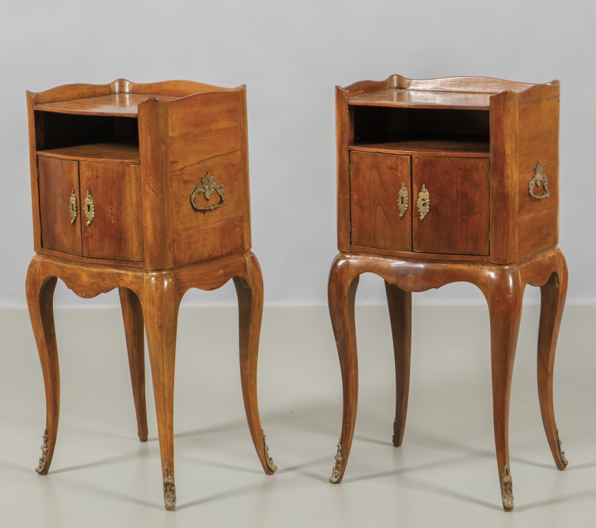 Coppia di comodini da centro in noce in stile Luigi XV due sportelli sul fronte