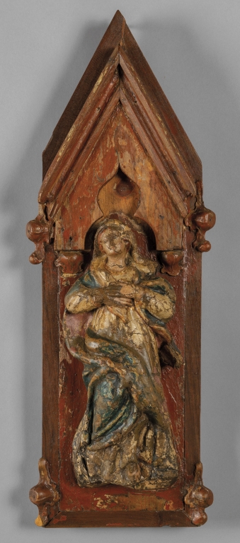 Madonnina in papier-maché dentro cornice a tabernacolo
