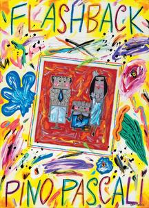 Bruno Donzelli Napoli 1941 Flash Back Pino Pascali Olio e tecnica mista su tela, cm. 70x50 Firma in basso a destra: Donzelli; firma e titolo al verso sulla tela: Bruno Donzelli / "Flash Back / Pino Pascali". Foto autenticata dall'artista.
