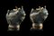 Coppia di creature fantastiche in metallo cloisonné, marchio apocrifo...