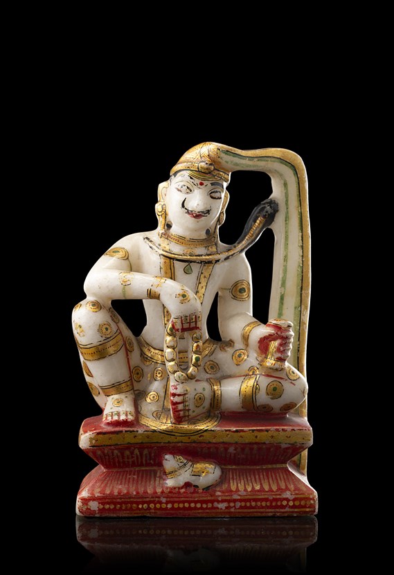 Scultura in alabastro raffigurante la divinità Shiva (o Mahesh il distruttore), con dettagli a colori