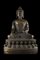 Buddha in bronzo dorato, raffigurato seduto su base a doppio loto