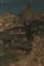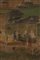 Due pannelli da parete dipinti con paesaggio montano con fiume e figure tra...