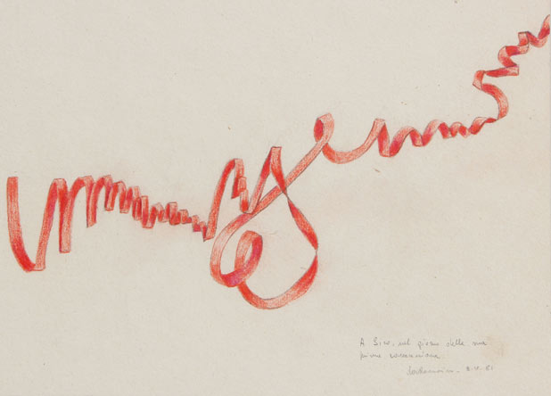 DADAMAINO Milano 1930 - Milano 2004 Senza titolo, 1981 matita e pastello su carta, cm. 17.5 x 24.5 Dedica, firma, data 'Dadamaino, 3/5/81' (in basso a destra) Autentica a cura di Flaminio Gualdoni, con n° 10/09, in data Milano, 07/04/09