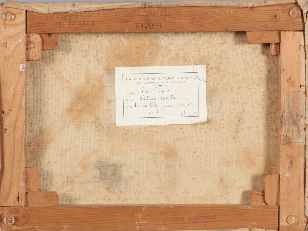 sul retro: etichetta della Galleria Mereu Genova; timbro della Galleria Russo Roma