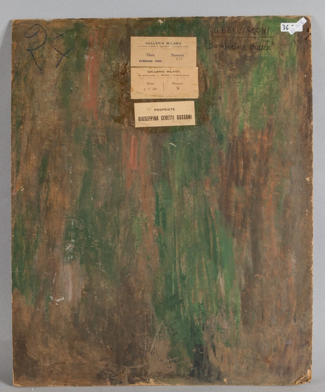 sul retro: etichette della Galleria Milano datate 1921 e 1932