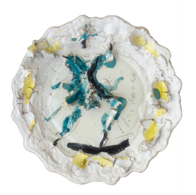 ceramica colorata: giallo verde e nero su fondo bianco Ø cm 40