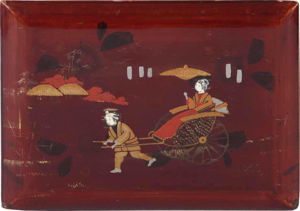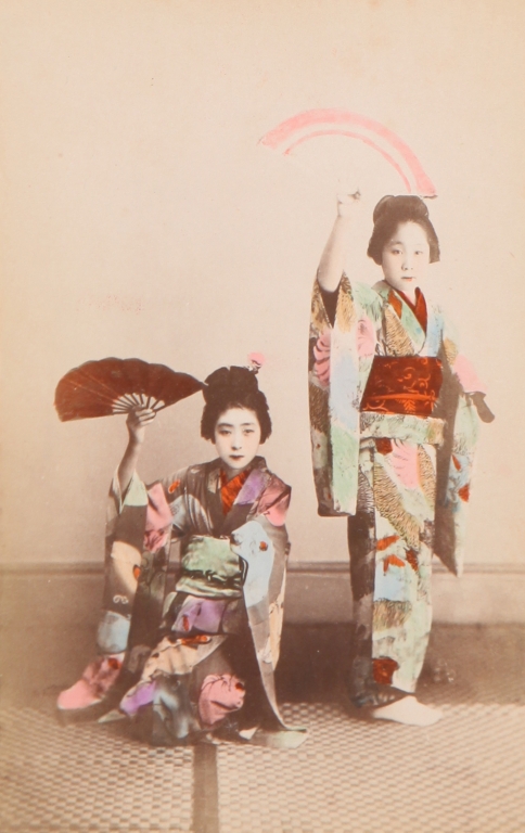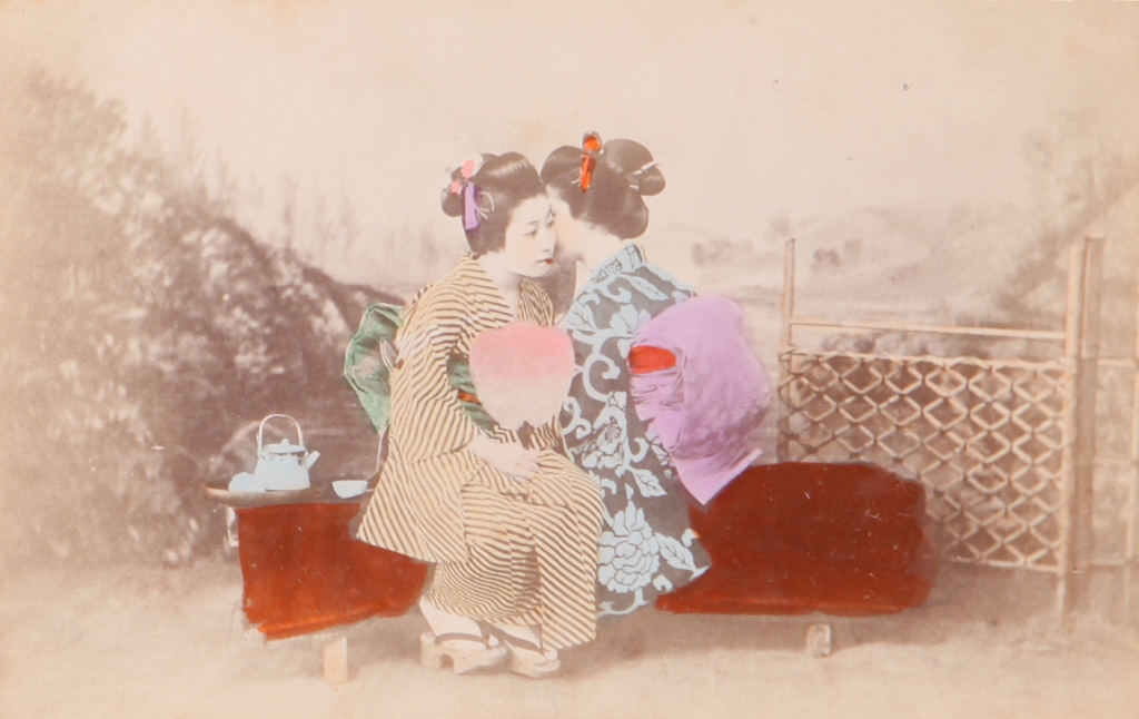 Album con copertine in lacca a leporello contenente 53 albumine colorate ad acquerello con scene di geisha e paesaggi