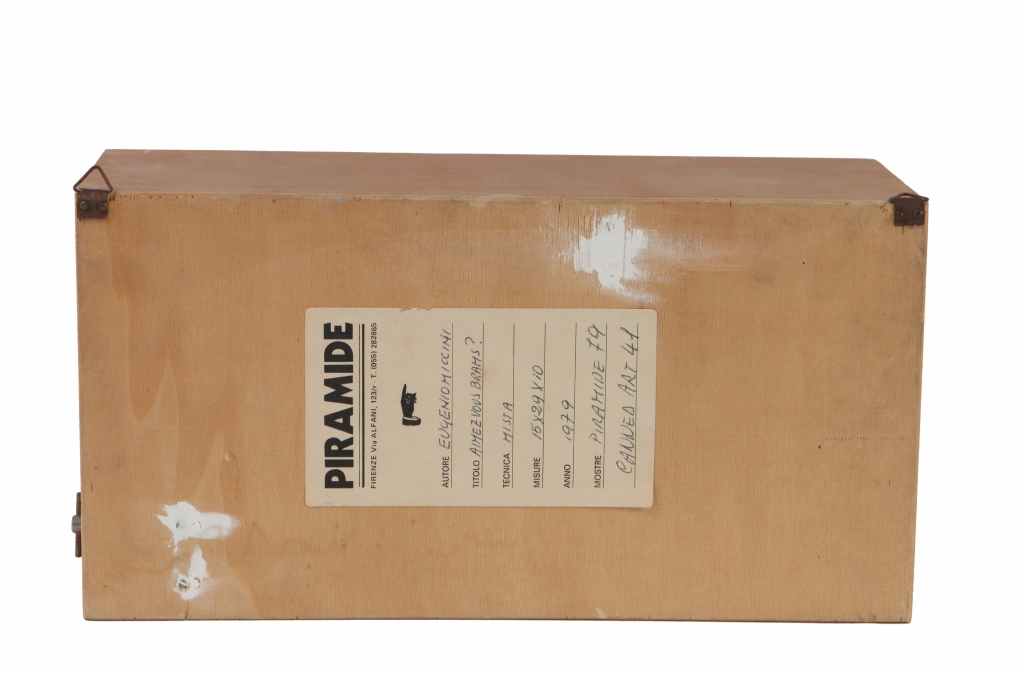 sul fondo: etichetta della Galleria La Piramide Firenze