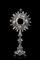 Ostensorio in argento sbalzato con fusto a balaustro e base sagomata poggiante