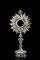 Ostensorio in argento con fusto a balaustro poggiante su base circolare bombata