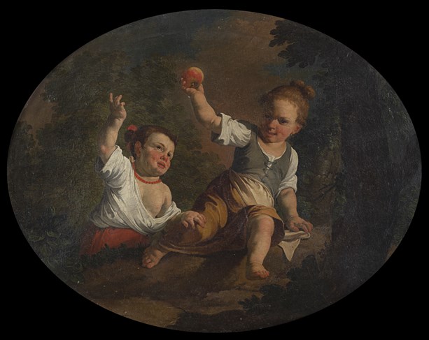 Francesco Celebrano (attr.) Fanciulli che giocano Olio su tela ovale cm 73,5x94