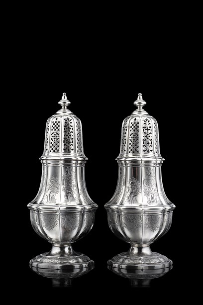 A pair of silver sugar-casters. France, 18th Century (h. cm 22) (g 1030 ca.)